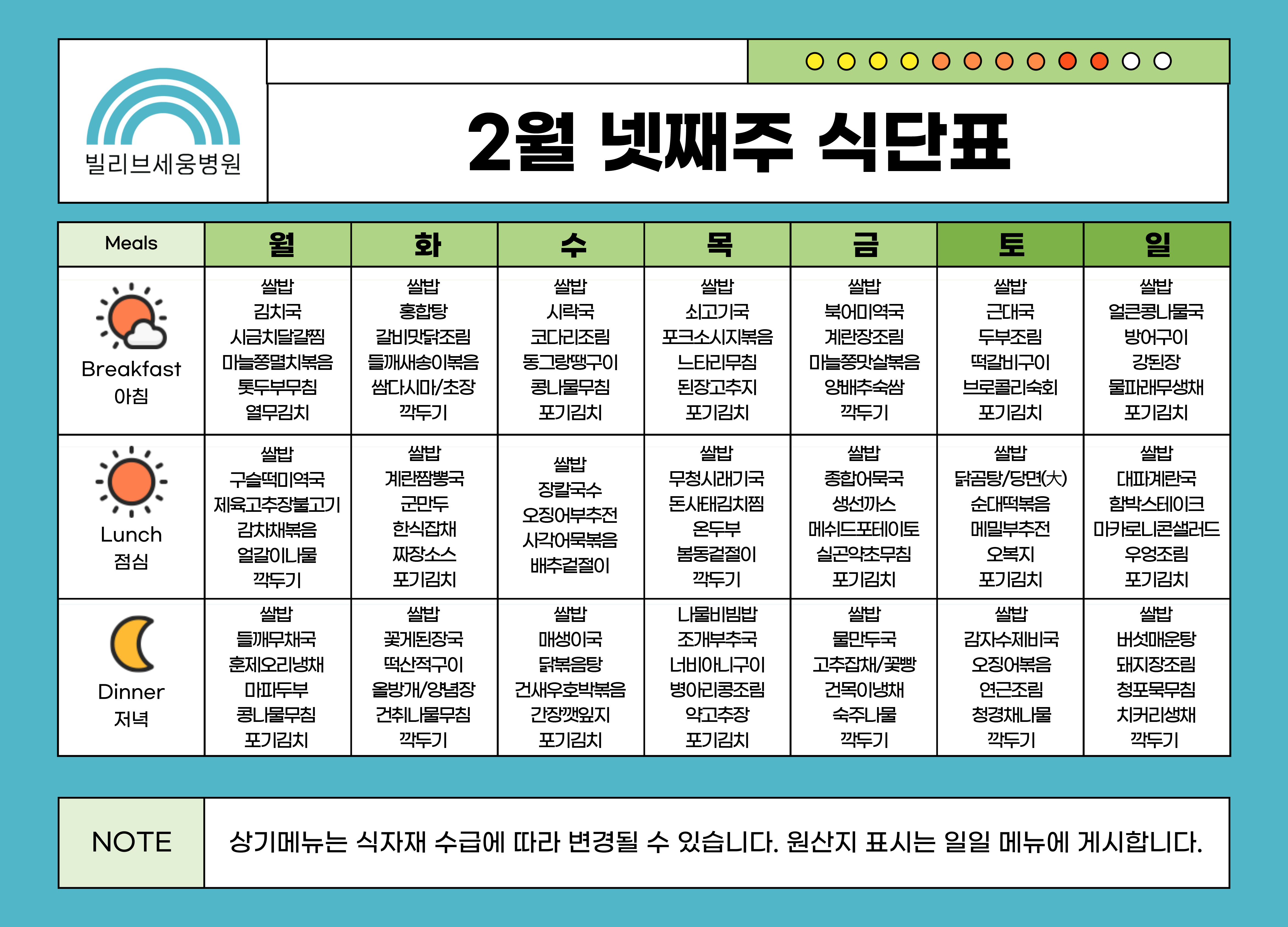 2월 넷째 주 식단표 업로드 안내 - 02/23(월) ~ 03/01(일)