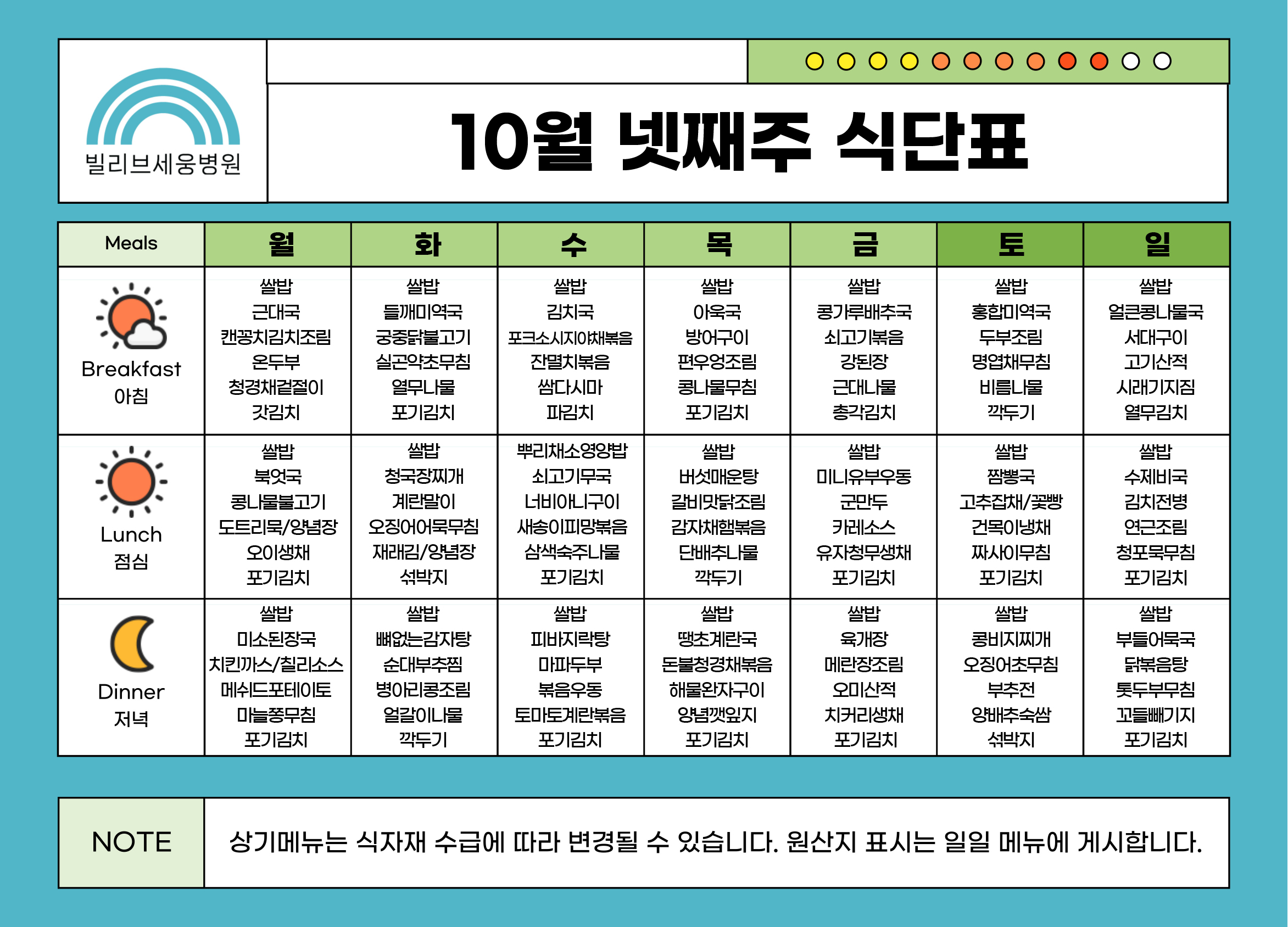 10월 넷째 주 식단표 업로드 안내 - 10/27(월) ~ 11/02(일)