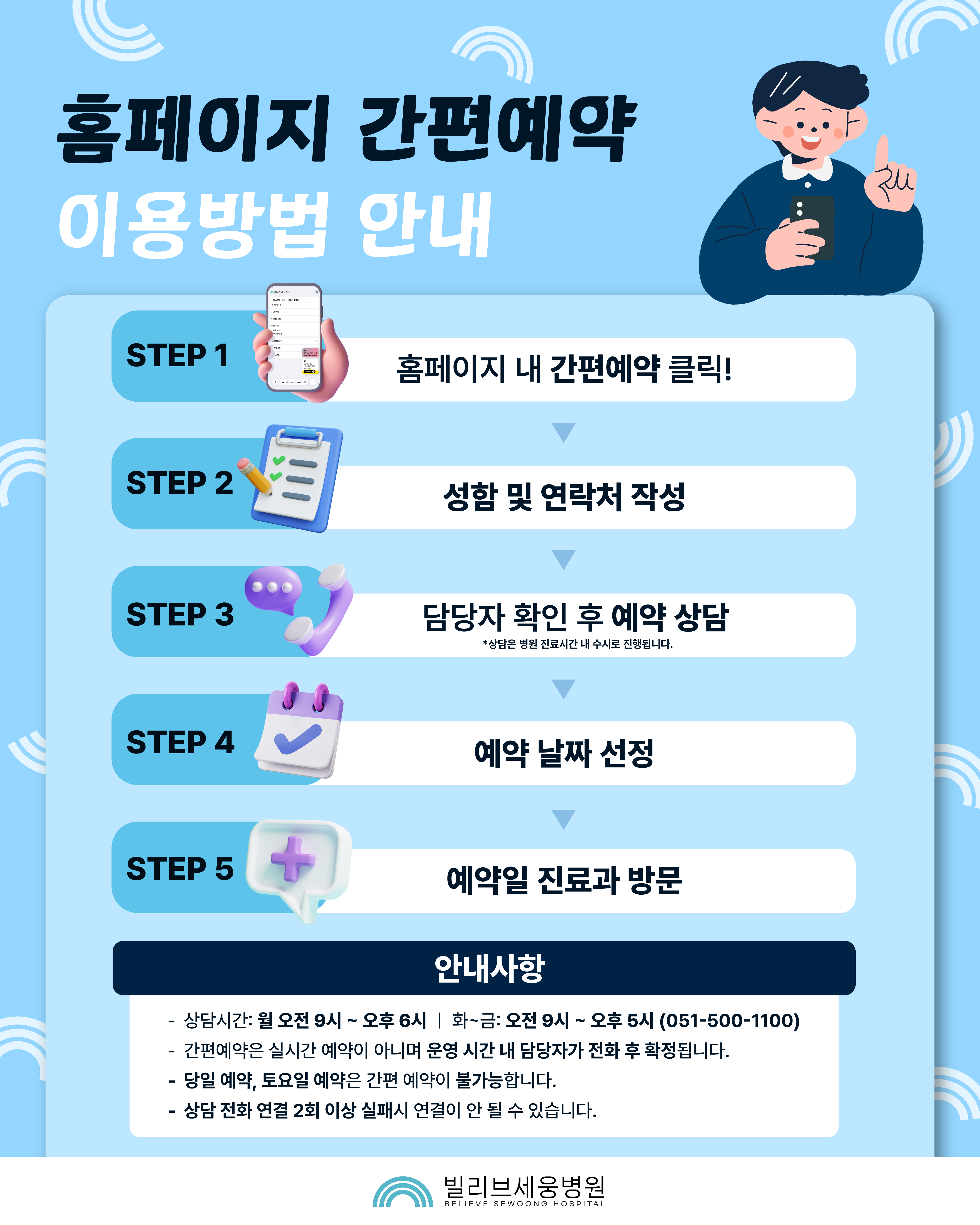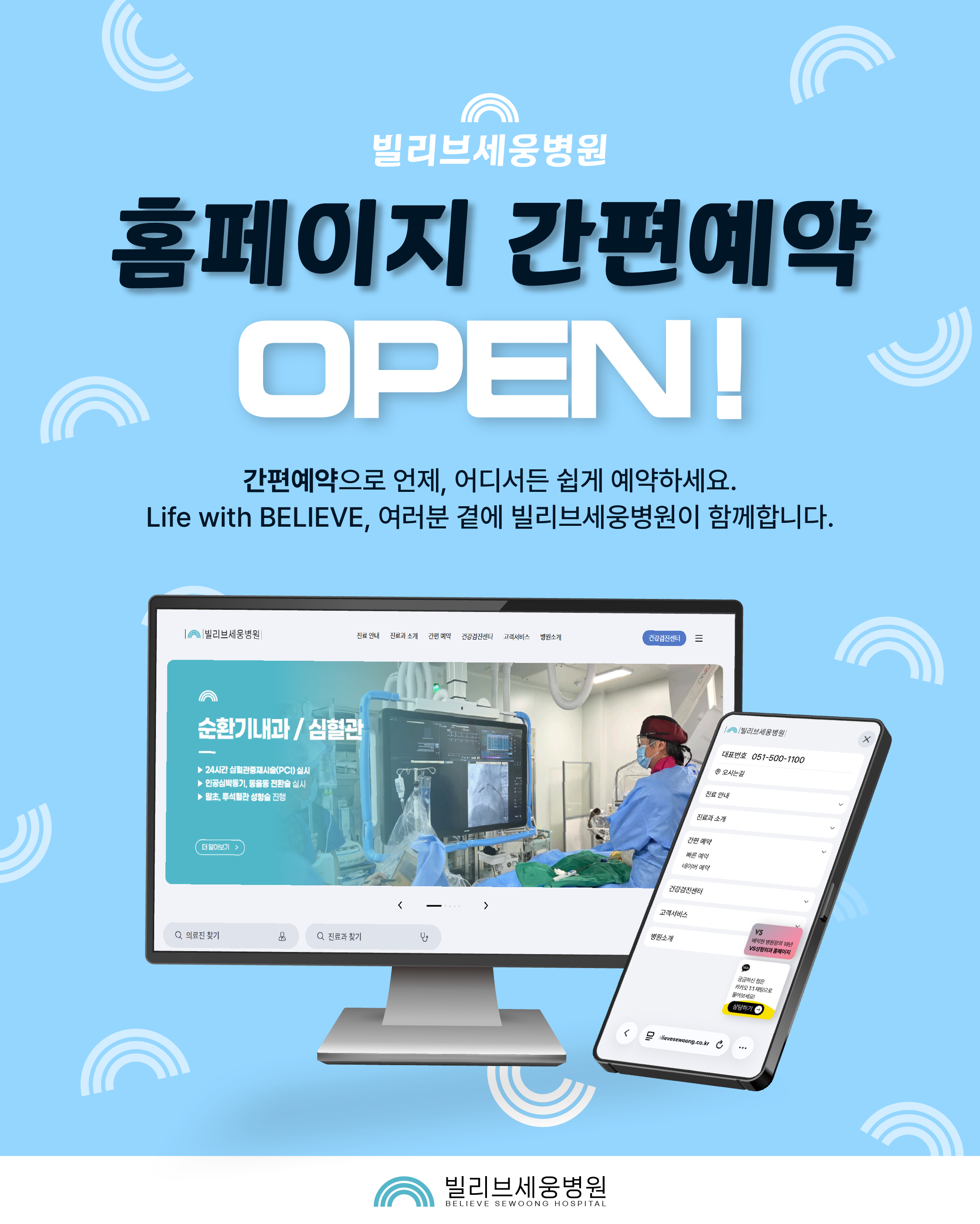 빌리브세웅병원 홈페이지 간편예약 시스템이 오픈되었습니다! 🎉