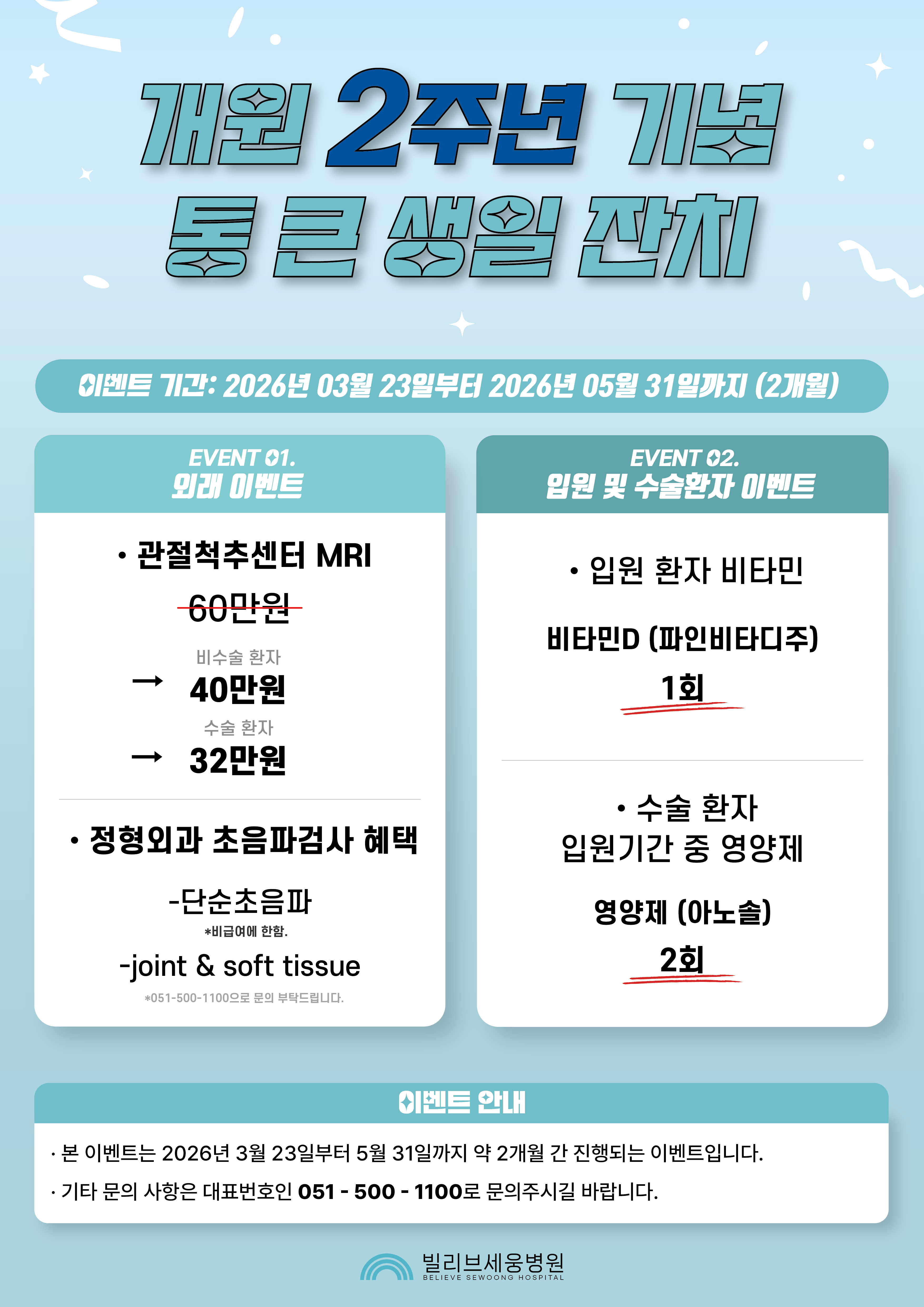 📢 [빌리브세웅병원 2주년 기념 통 큰 생일잔치]