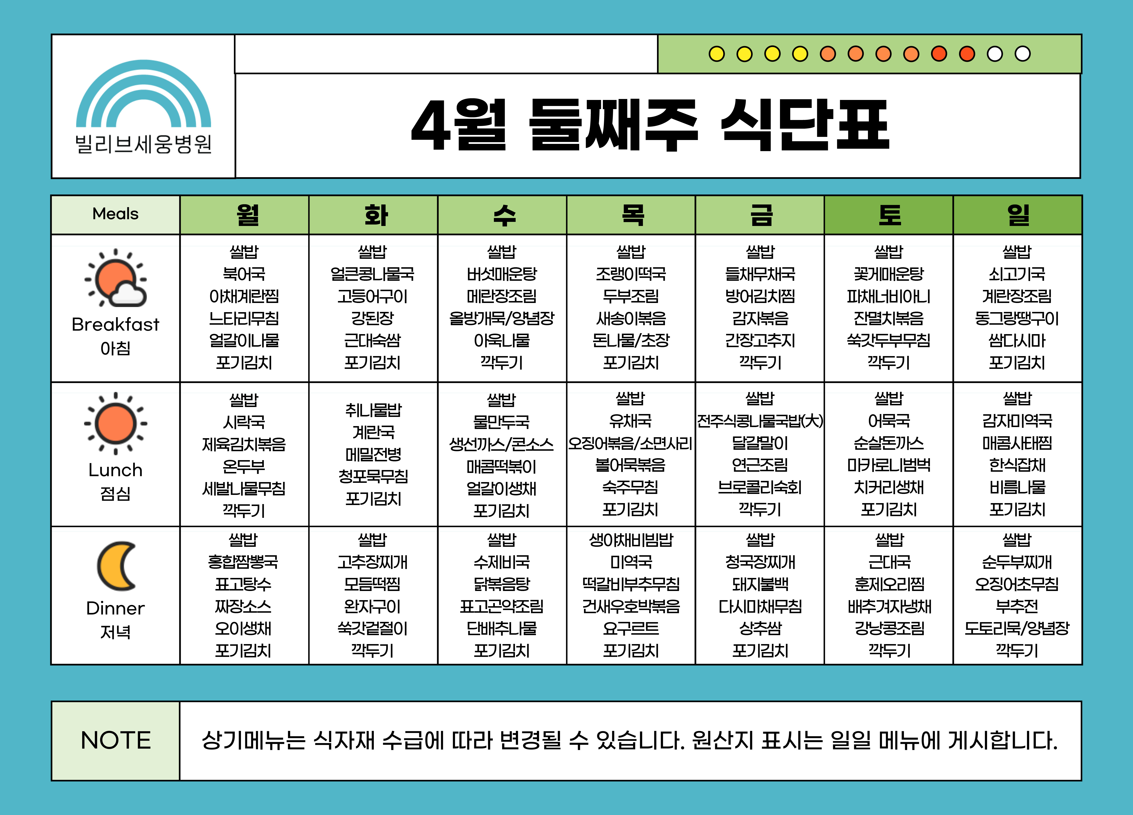 4월 둘째 주 식단표 업로드 안내 - 04/06(월) ~ 04/12(일)