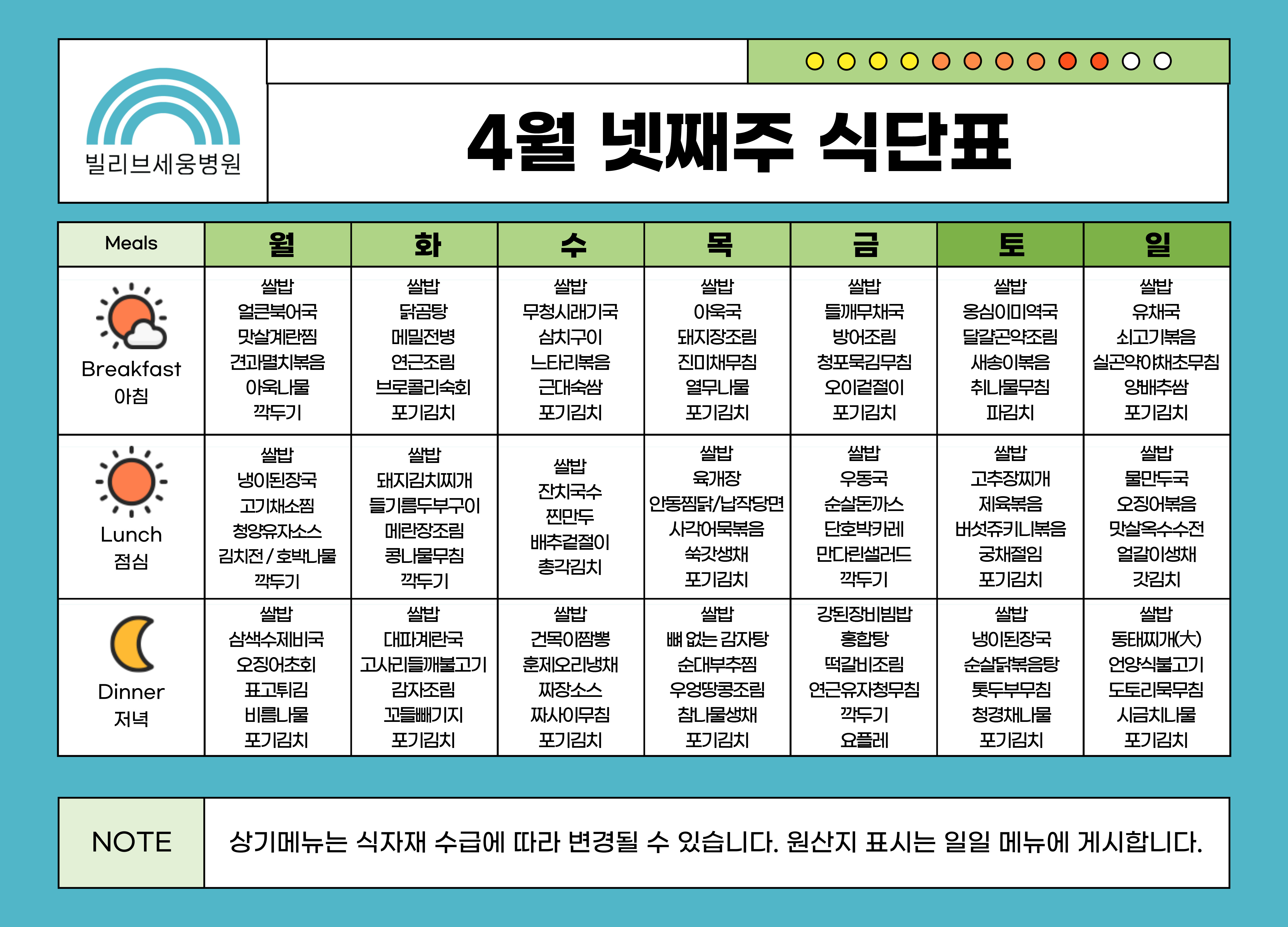 4월 넷째 주 식단표 업로드 안내 - 04/20(월) ~ 04/26(일)