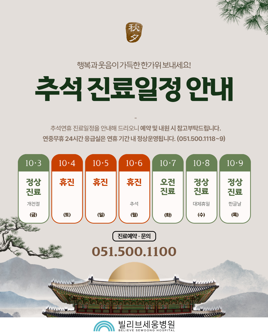 📍10/8 (수) 대체공휴일 - [정상진료]